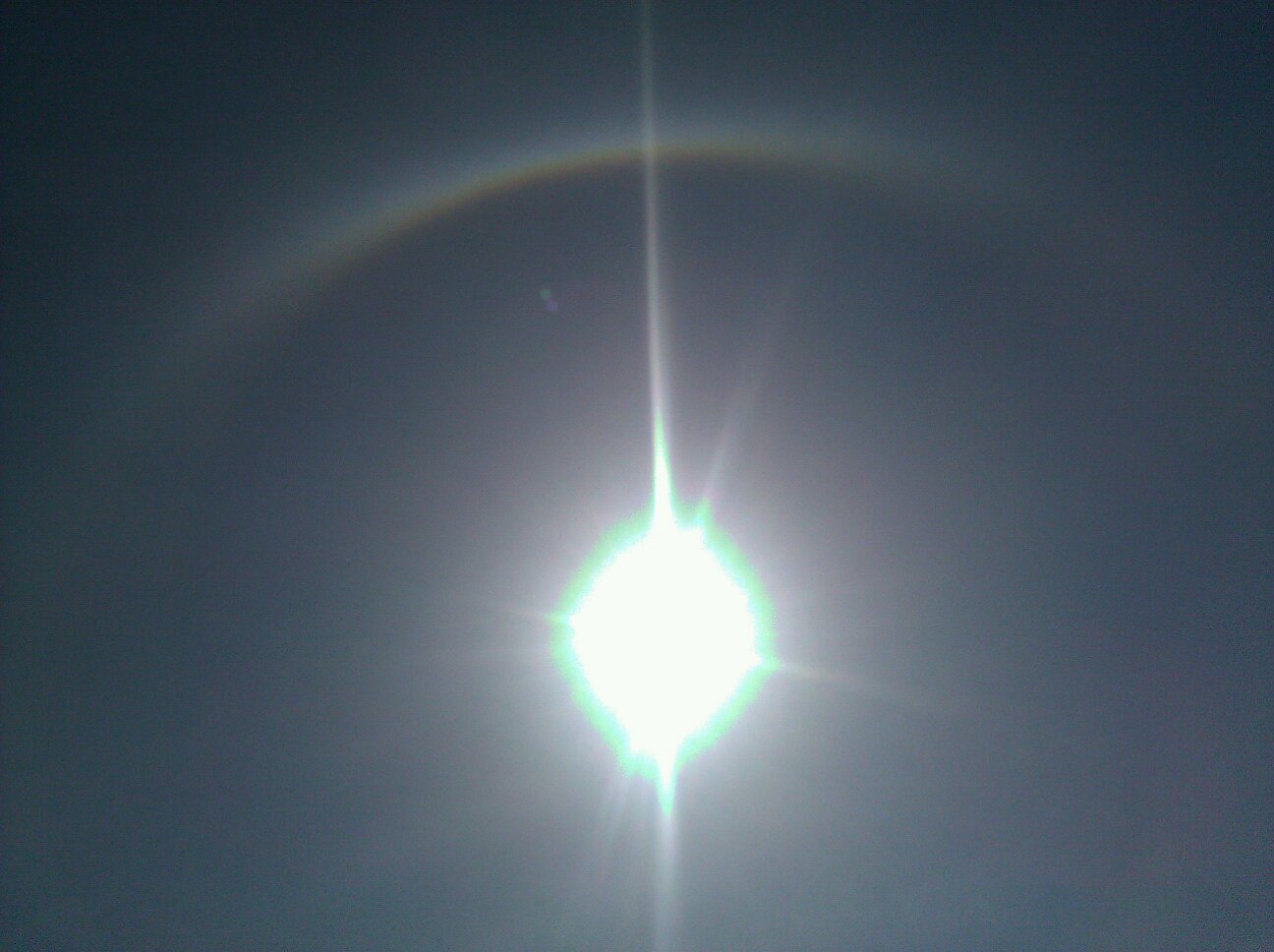 Just so happens I'm the first to have uploaded shots I took of the Solar Halo (Rainbow encircling the sun) today actually a few minutes ago... up on facebook, but I want to post it here too... funny thing is pride is happening today, so if everyone looked up they saw a huge circle rainbow around the sun... hopefully it'll help them realize what its all about, but who knows. I really wanted to publish this though to get it on the web first ;)
